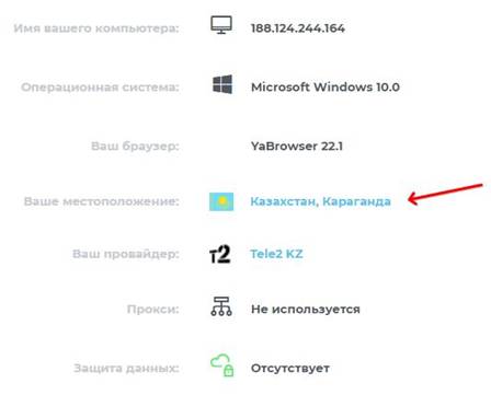 Для дальнейшей проверки необходимо зайти на сайт https://2ip.ru с компьютера, с которого отправляете отчет. На страничке Вы увидите информацию об интернет соединении. Здесь нужно обратить внимание на значение Ваше местоположение.